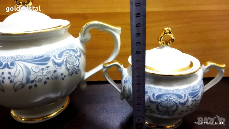 Стар български порцелан Изида барок чайник захарница латиера неизползвани без забележки сервиз комплект сет лот ретро арт декор винтидж колекция стари старинни антикварни предмети обзавеждане за дома и семейството подходящи за подарък за ценители и колекционери