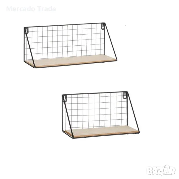 Комплект декоративни рафтове Mercado Trade с метална мрежа на гърба и дървена (MDF) основа.Те не изискват сглобяване и се монтират лесно с 2 винта и дюбели (не са включени).