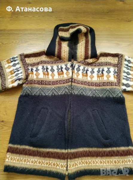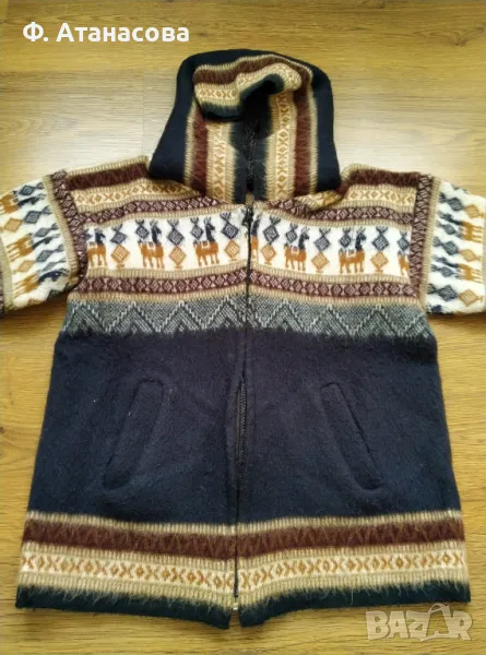 Супер топла и мекичка жилетка с качулка и типични шарки закупена от Еквадор и носена много малко, защото бързо умаля на сина ми.