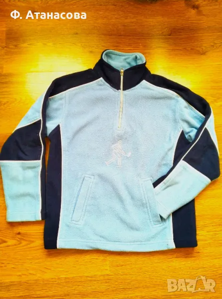 Прекрасно висококачествено пуловерче от полар за зимни спортове (хокей, ски, сноуборд) или просто за разходка или игра в снега. Поларът е много топъл и пази дори и от сериозни студове. Красив модел с бродерия на хокеист отпред.