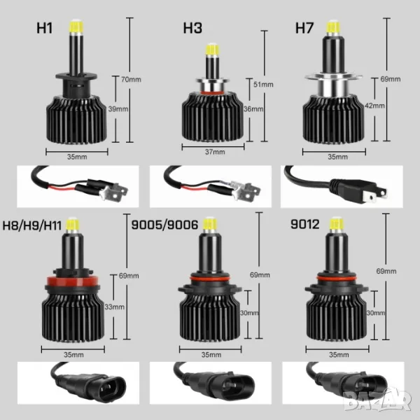 LED крушки с функция за основни светлини (къси или дълги) или халогени.