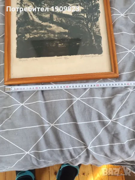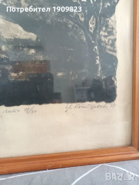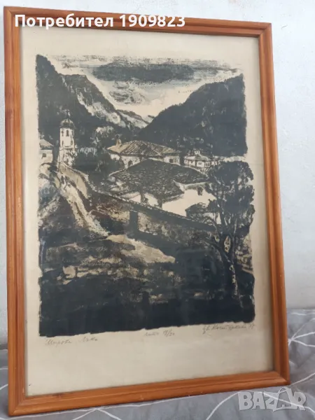 Литография. Размери по снимките. Рамката е със стъкло и има отблясъци.