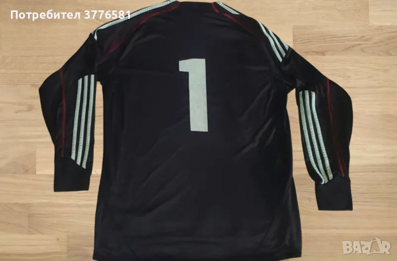 Вратраска футболна блуза adidas formotion мачова от вероятно дублиращия или юношеския отбор на Милан от сезон 2009/2010 г номерът на гърба е мъхест има леки напуквания снимани са , размера отговаря Л по мъжката номерация , общото състояни на тениската е отлично няма бримки лекета или топчета . 100 % Оригинална цената е крайна ! Получавате пратката с куриер с преглед и тест преди заплащане.