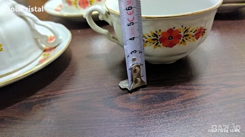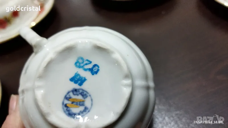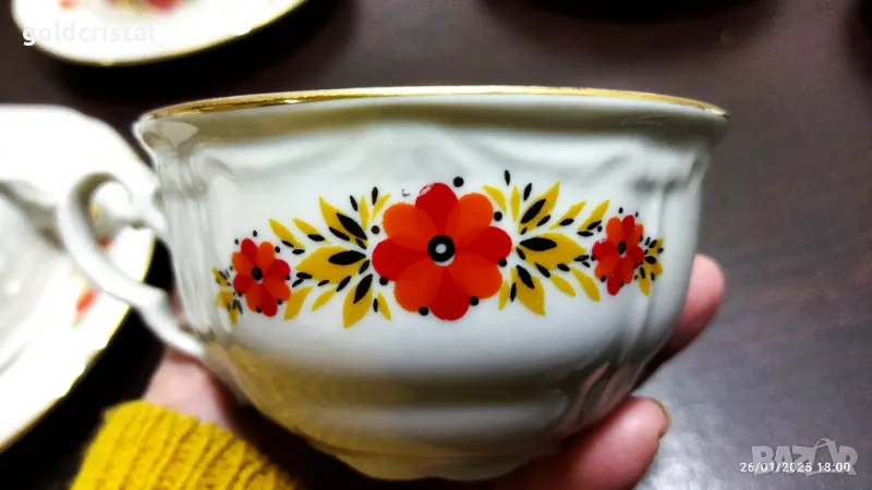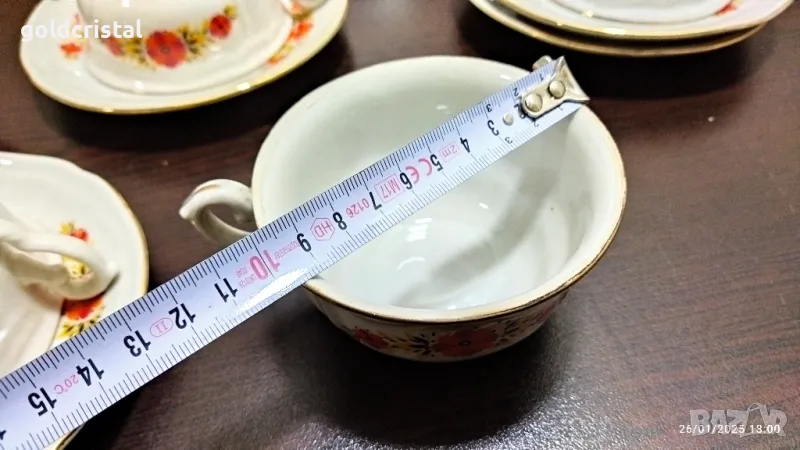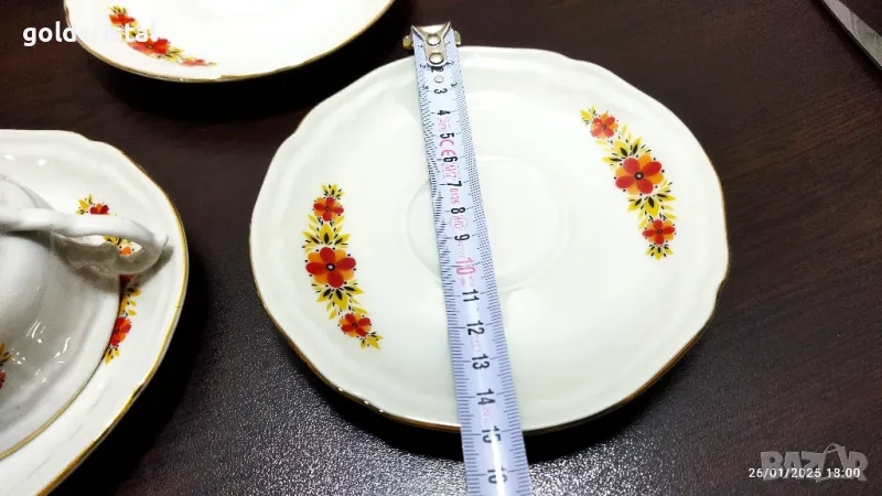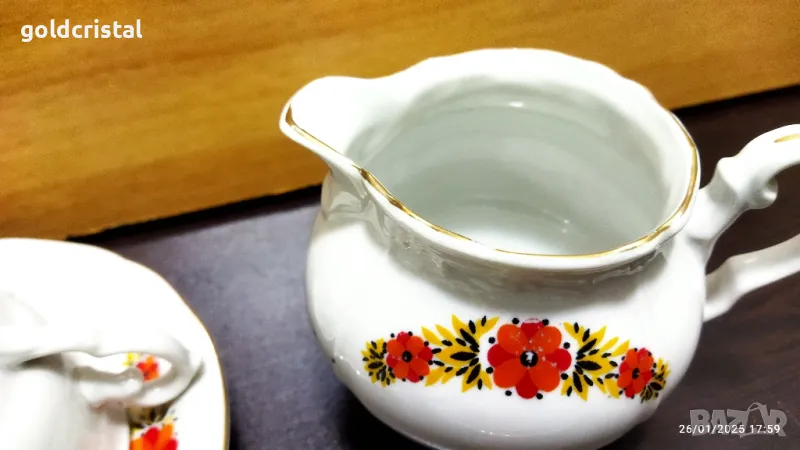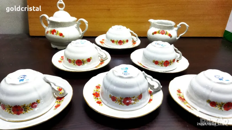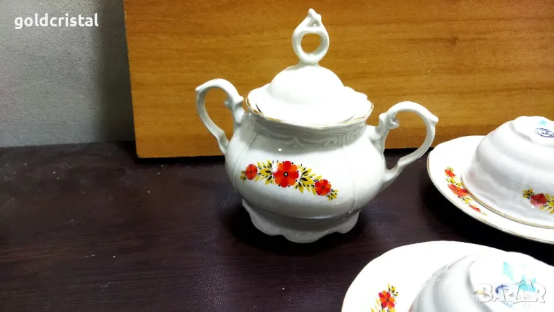 Стар български порцелан чаши за чай кафе захарница латиера златен кант неизползвани сервиз комплект сет лот ретро арт декор винтидж колекция стари старинни антикварни предмети обзавеждане за дома и семейството подходящи за подарък за ценители и колекционери