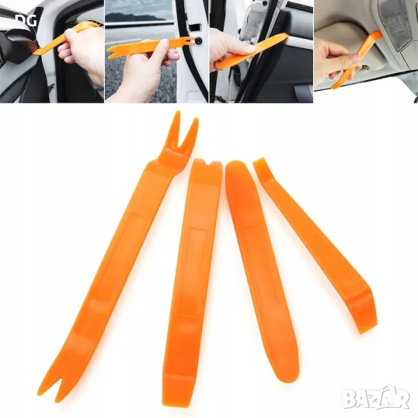 Комплект от 4 лъжици за оголване на тапицерия на автомобили, идеален и за отваряне на електронно оборудване с резета, напр. Дистанционни управления за телевизор и др. Не оставя абсолютно никакви следи от отваряне.