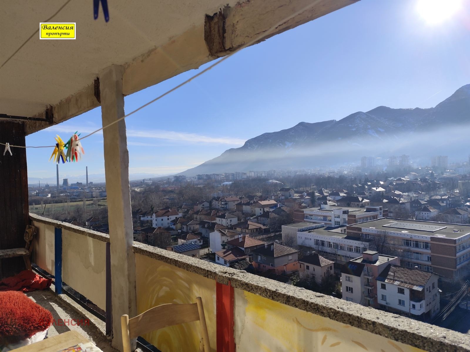 Тристаен - южен,слънчев, с красива гледка към балкана с разпределение,кухненски бокс, хол, две спални, обща баня с тоалетна, огромни тераси пред всички стай, работещ асасньор,входна врата на блока - с контролиран достъп