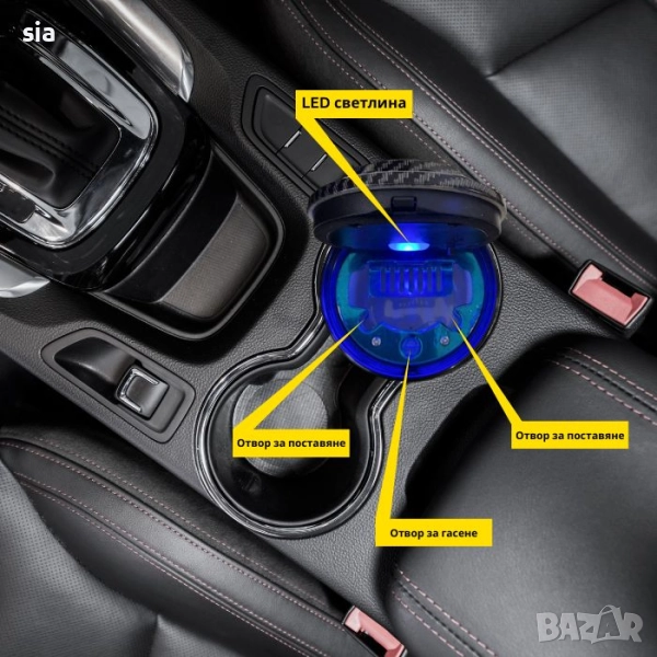 - Монтаж: Универсален – поставя се в гнездото за чаши на автомобила