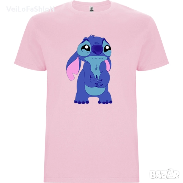 Новa детска сладка тениска в бял, черен или розов цвят с Tъжен Стич - Sad STITCH, произведена от 100% памук с плътност на тениската 190гр./м². Тениската е с тънко деколте съдържащо ликра за по -добра здравина при обличане. Подходяща както за ежедневна употреба, така и за спорт или тренировка в свободното време.