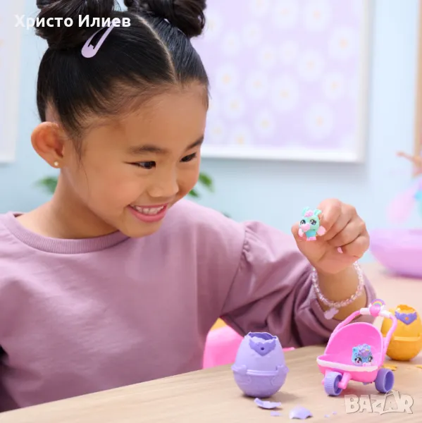 Комплектът от Hatchimals ще се хареса на всички малчугани. С него децата ще могат да развихрят въображението си и да измислят безброй игри. Комплектът включва две цветни яйчица, които сами да излюпите. За целта трябва да ги нахраните - махнете бибероните, напълнете бутилката с вода, изстискайте я във всяко яйце и те ще започнат да се излюпват пред очите ви.