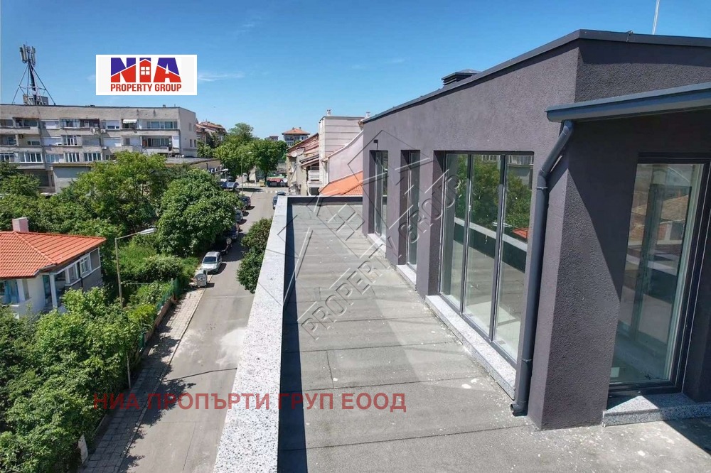 Имотът се намира на етаж 5 от 5 етажна сграда, с жилищна площ от 120 кв.м. и огромна тераса 42,8 кв.м.