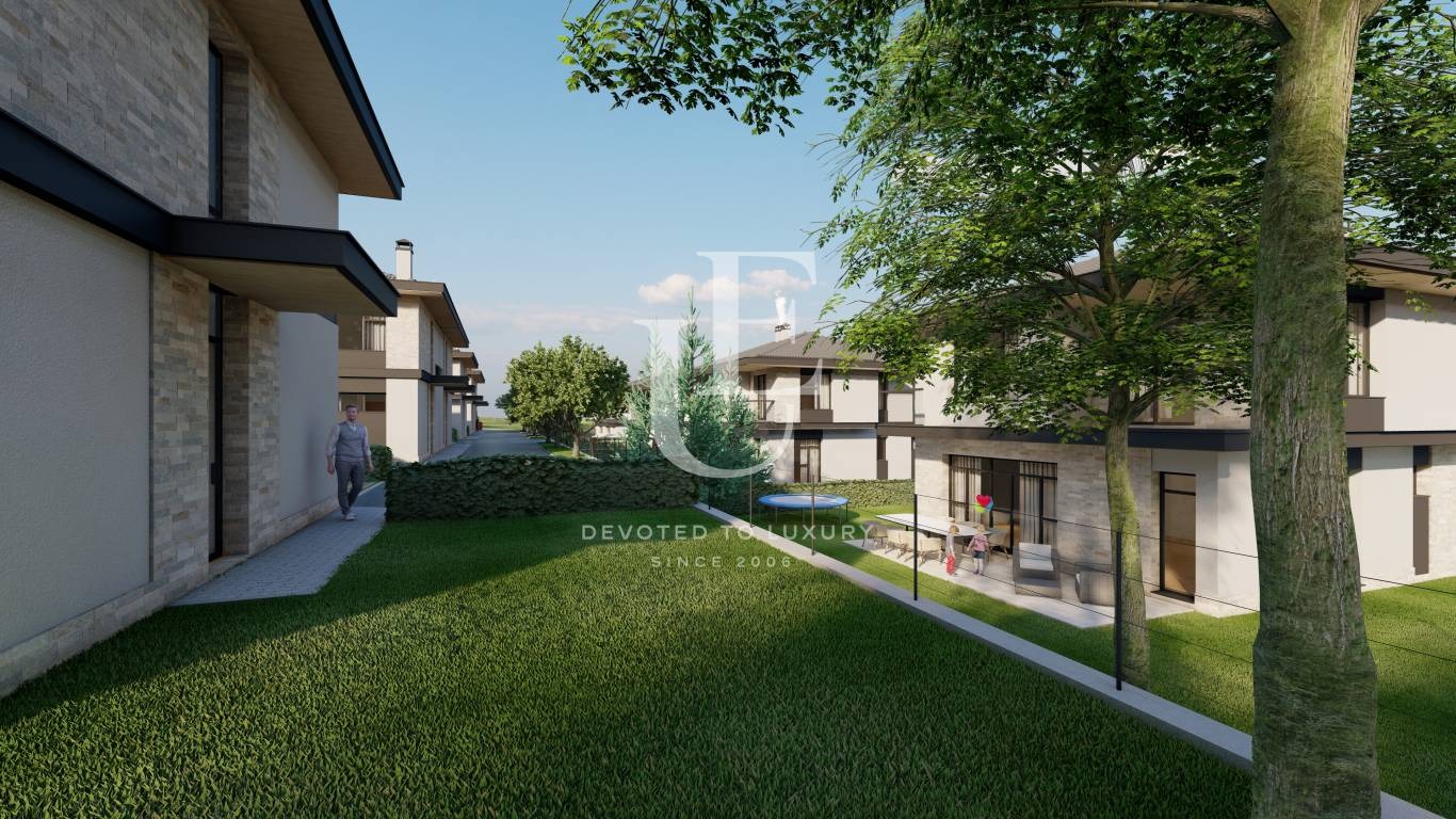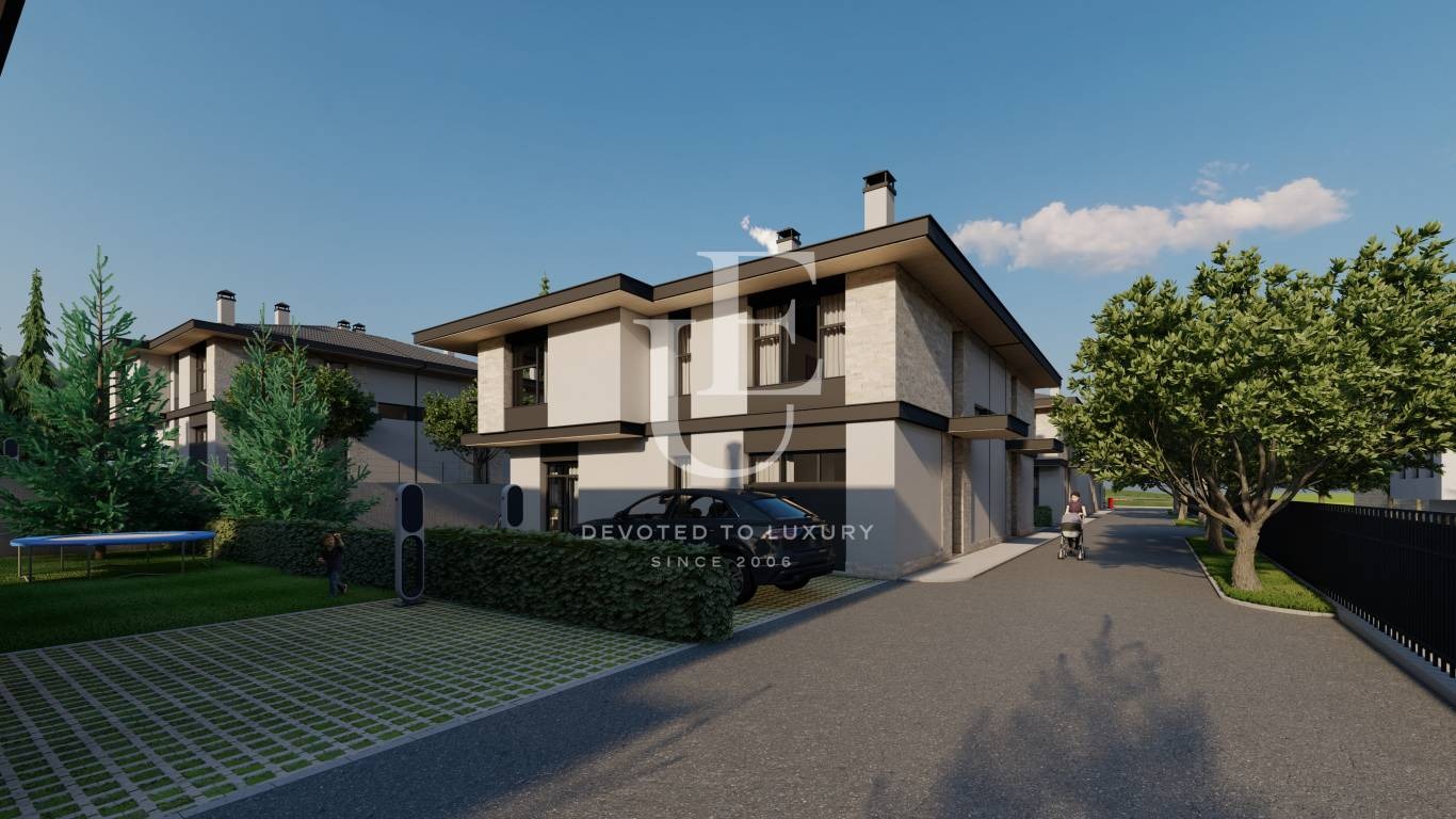 Unique Estates Unique Estates Ви представя прекрасна еднофамилна къща на два етажа. Къщата се характеризира със съвременен дизайн, уединение и комфорт в престижния район на Банкя. Имотът се намира в малък жилищен комплекс идеален за семейства, които търсят спокоен и луксозен начин на живот, заобиколени от зеленина, но в непосредствена близост до града. Очаква се всички къщи в комплекса да бъдат завършени през 2026 г.