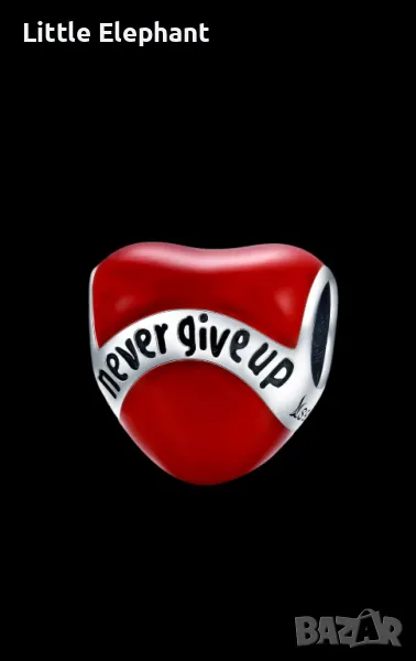 Сребърен елемент сърце Пандора"Never give up",колекция"Hearts"/нов → Обява 48860288
