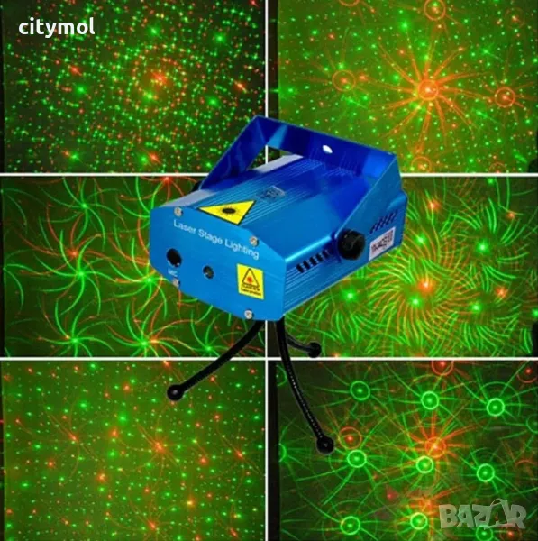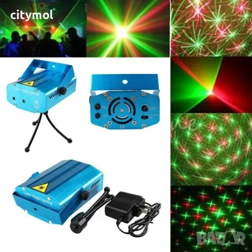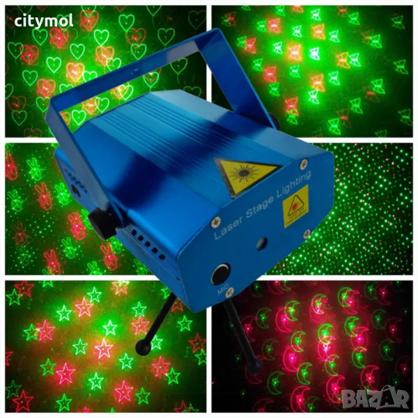 Дискотечен лазер, двуцветен - зелен и червен - фигури