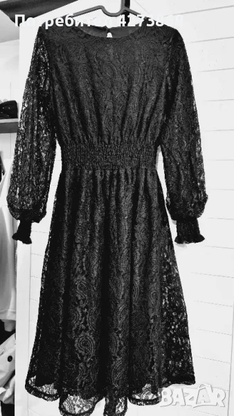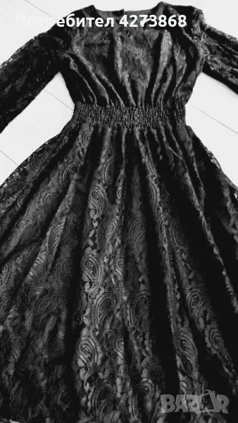 Рокля от черна дантела,с широк ластик на кръста и на ръкавите, подплата от горе до долу .