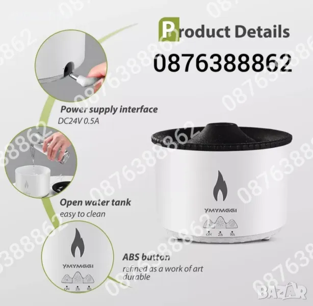 Има функция на таймер, която може да се настрои да се изключва на интервали от 2/8 часа, с вграден защитен чип, той автоматично ще се изключи, ако водата му свърши.