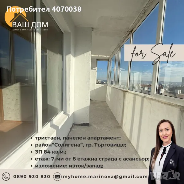 Представяме Ви за продажба тристаен, панелен апартамент;