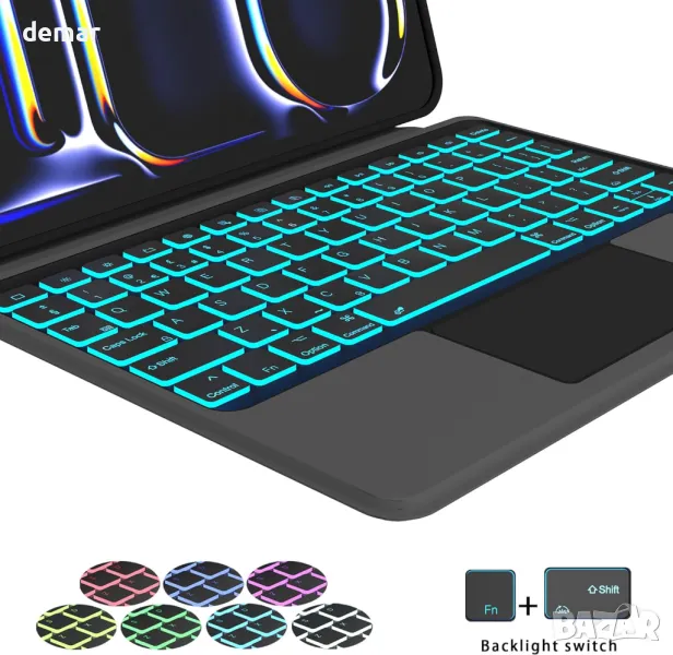 ROOFEI Калъф с клавиатура за iPad Pro 11-инчов (M4, 2024, A2836,A2837,A3006), 7 цветна подсветка