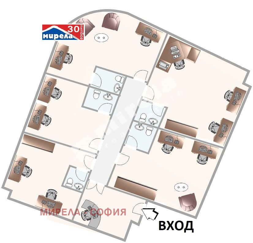 345651 Предлагам за продажба офис, заемащ самостоятелен етаж от бизнес сграда, подходящ за медицински център, банков клон, езикова школа и др.