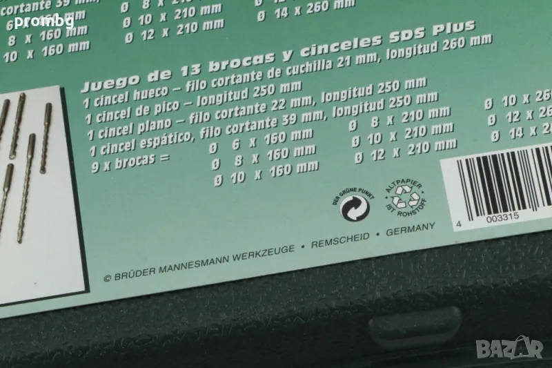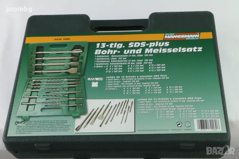 Mannesmann комплект длета и свредла 13 бр., SDS-plus, немски, внос от Германия. Съдържание: