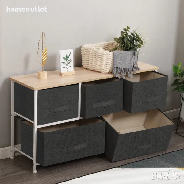 5-те чекмеджета от нетъкан текстил предлагат дишащо и организирано решение за разчистване и подреждане на дома ви.