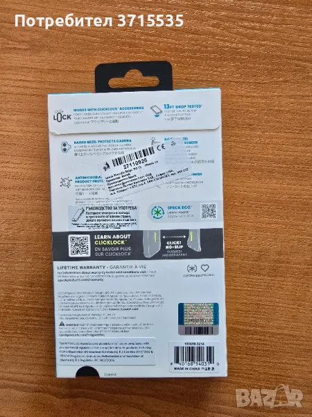 Шок-абсорбираща технология Presido2 Armor Cloud™ — въздушни капсули поемат силата на удара и я разпределят равномерно. Противомикробна технология Microban - предпазва кальфа от развитието на вредни микроорганизми. Мек на допир матиран завършващ слой ClickLocк система — осигурява по-здрав захват на съвместими Speck ClickLock аксесоари. Патентован повдигнат защитен кант за дисплея.