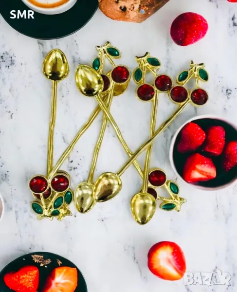 Комплект от 6 лъжици за кафе с черешки на дръжките