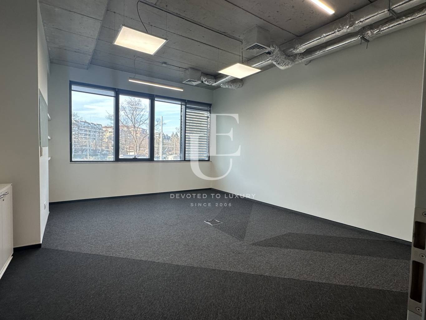 Юник Естейтс предлага на вашето внимание чудесен офис в луксозна офис сграда клас А+++ съвсем близо до Парадайс Мол и метростанция. Офисът е завършен с двоен под и мокет, напълно оборудвана кухня, санитарни помещения. Отопление и охлаждане с висок клас термопомпа.