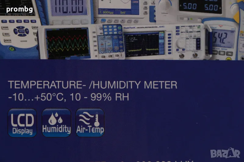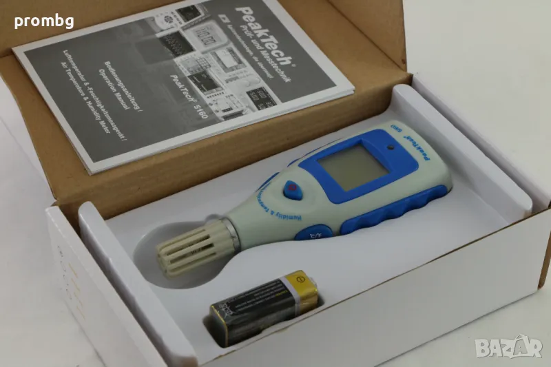 цифров термометър с влагомер,нов, немски, PEAKTECH,внос от Германия. Практичният и здрав дизайн прави този инструмент идеален за ежедневна употреба в строителната индустрия и за оценка на климата в жилищни помещения и оранжерии.