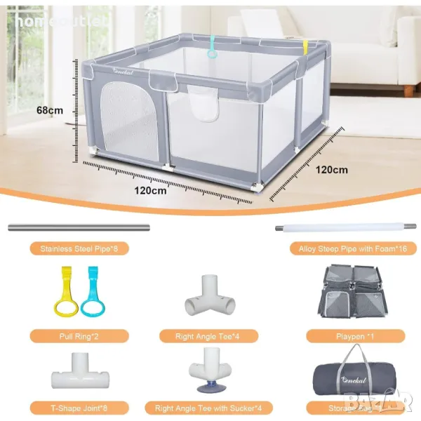 Лека и здрава по структура, а материалът е устойчив на износване и разкъсване. Добавени са дунапренени ленти към металната тръба в средата и горната част на кошарата за игра, която предпазва бебето от блъскане и нараняване и няма риск от прищипване.