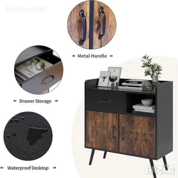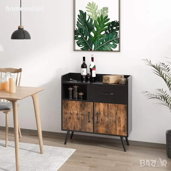С многофункционалния си дизайн този дървен шкаф може да се използва като шкаф за съхранение, свободностоящ бюфет, за акцент на различни места, като хол, кухня, трапезария, коридор, антре, ресторант и бар .
