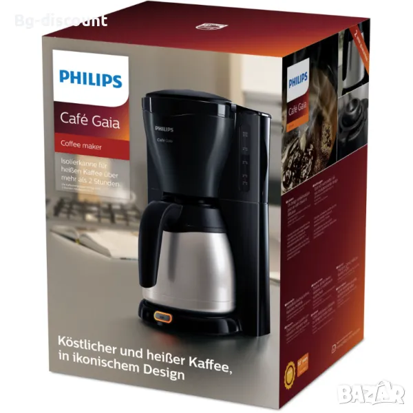 Кафемашина Philips Gaia HD7544/20 е перфектният избор за любителите на кафе, които ценят качество и удобство. С мощност от 1000 W и капацитет от 1,2 л, тя може да приготви до 10 чаши кафе. С термоустойчива кана от неръждаема стомана с двойна стена, тя поддържа температурата на кафето за по-дълго време и запазва аромата. Системата против капки позволява да налеете чаша кафе по всяко време, без да разлеете. Има индикатор за нивото на водата за лесно пълнене и отделение за съхранение на кабела, което прави поставянето на кафемашината в кухнята лесно и удобно. Интелигентното заключване на каната гарантира, че кафето ще бъде топло и вкусно за дълго време.