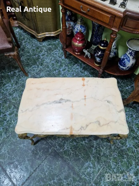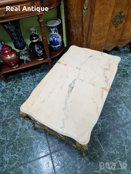 Продавам прекрасна много красива антикварна белгийска бронзова масичка с плот от оникс в много добро състояние без забележки. Размери дължина 76 см ширина 46 см и височина 46 см. Чудесно допълнение към интериора на Вашия дом офис вила ресторант хотел . Подходяща и за подарък. Работя с всички куриери. Отговарям бързо.