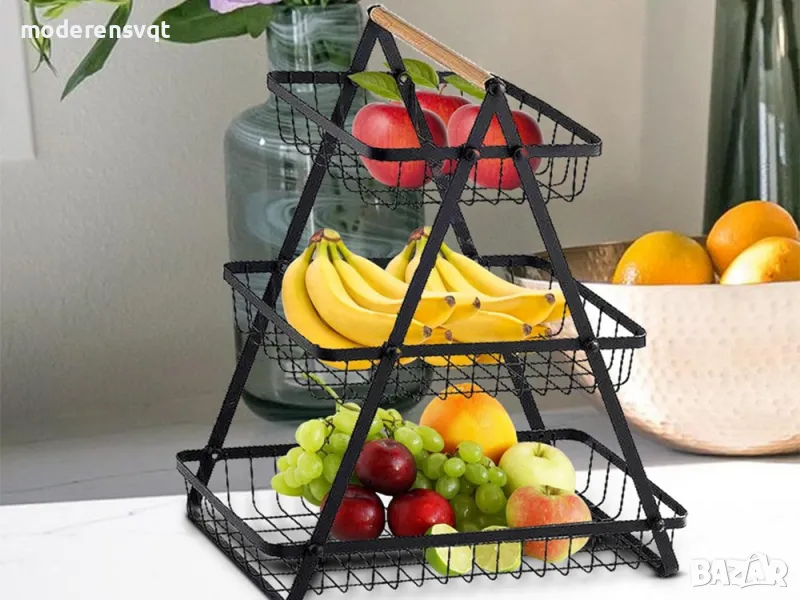 В кухнята органайзерът ще се използва като функционална поставка за подправки, буркани с насипни продукти, бутилки с олио, сосове и други хранителни продукти от първа необходимост . По този начин всички подправки и добавки ще бъдат винаги под ръка, което прави готвенето по-лесно и бързо. Металните рафтове осигуряват адекватна циркулация на въздуха, което е важно за свежестта на продуктите.