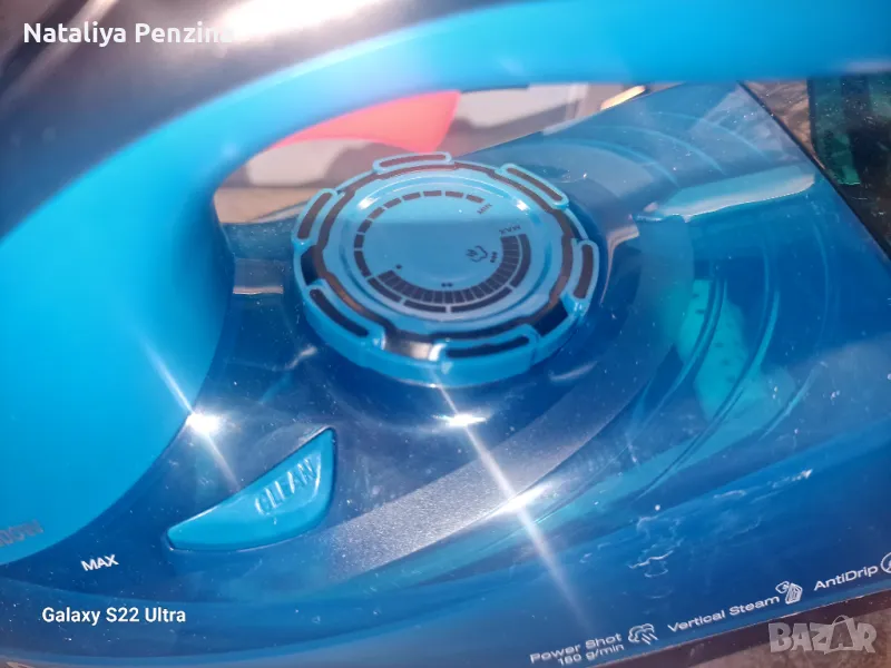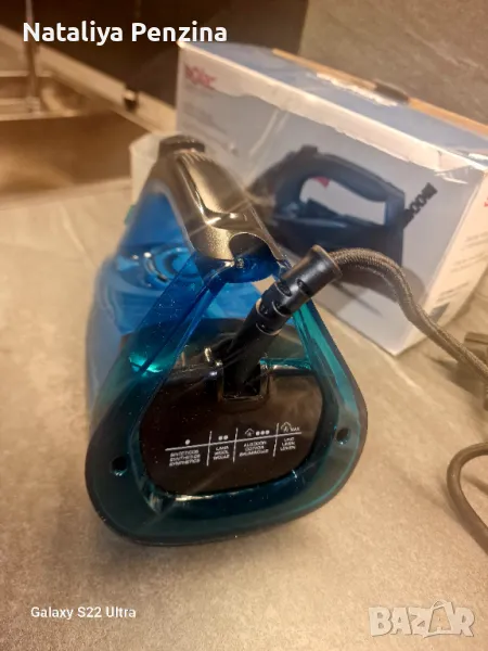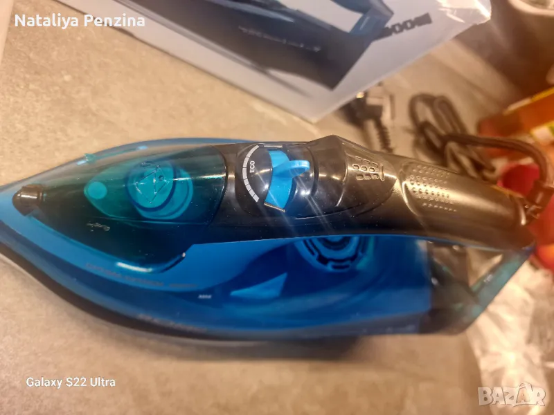 Нова ютия, не ползвана. Има един малък, незначителен дефект( счупено ухото на капачка а за вода). Капачка а е здраве и се держи добре.