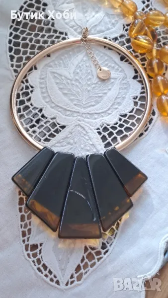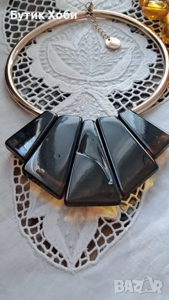 Освен златни и сребърни бижута има и висококачествена ежедневна бижутерия. Много от известните марки произвеждат точно такива бижута. Като това екстравагантно и забележимо колие/ чокър :) - имитация на черупка на костенурка, известната марка Mark Kain. Дължина - 44см, елемент - от 3.5 до 6.5см.