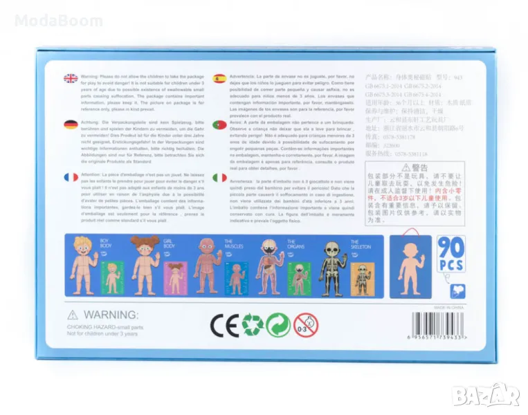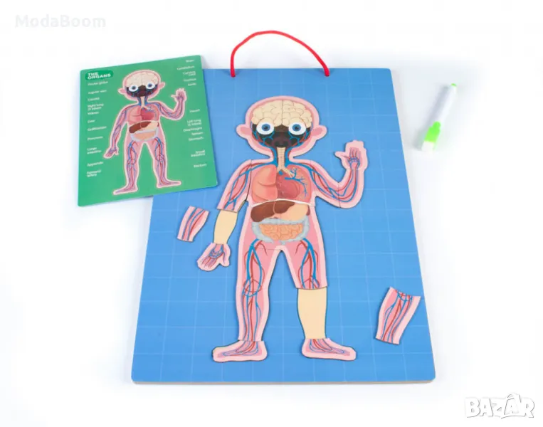 Всяко дете е любопитно – интересува се от какво е направен света, как работят нещата, а едни от най-често задаваните въпроси са за човешкото тяло – от какво се състои, кое къде се намира, какво представляват сърцето, мозъкът и т.н. Този чудесен комплект е идеалният начин вашето мъниче да се запознае по достъпен и забавен начин с основите на човешката анатомия. Върху магнитната дъска детето само сглобява пъзел с тяло на момченце, тяло на момиченце, човешкия скелет, модел на основните органи или каквото избере от шестте различни карти с нарисувани различни анатомични системи, а когато е готово, дъската лесно може да се закачи на стената!