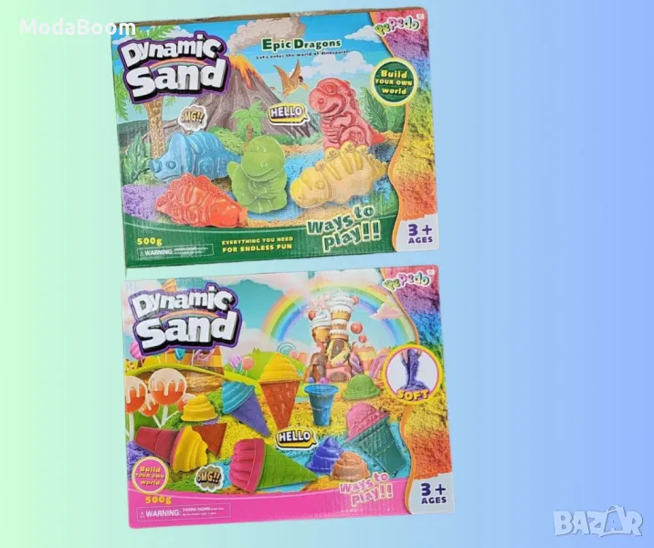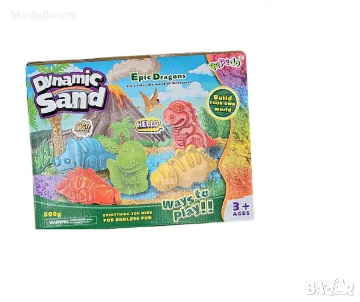 Кинетичен пясък с тематични динозаври, 500 гр в опаковка. Идеален за деца, които обичат приключения и игри със забавни форми. Пясъкът е мек, лесен за моделиране и не изсъхва, като осигурява часове забавление. Може да се използва за създаване на различни динозавърски фигурки или ландшафти. Подходящ за развиване на фината моторика, креативност и въображение.