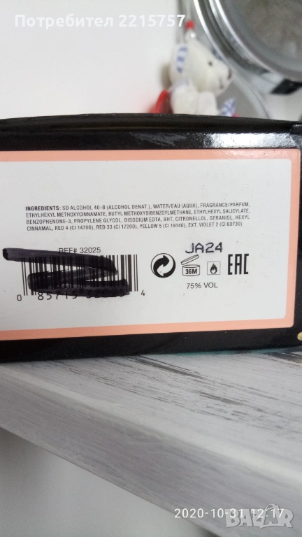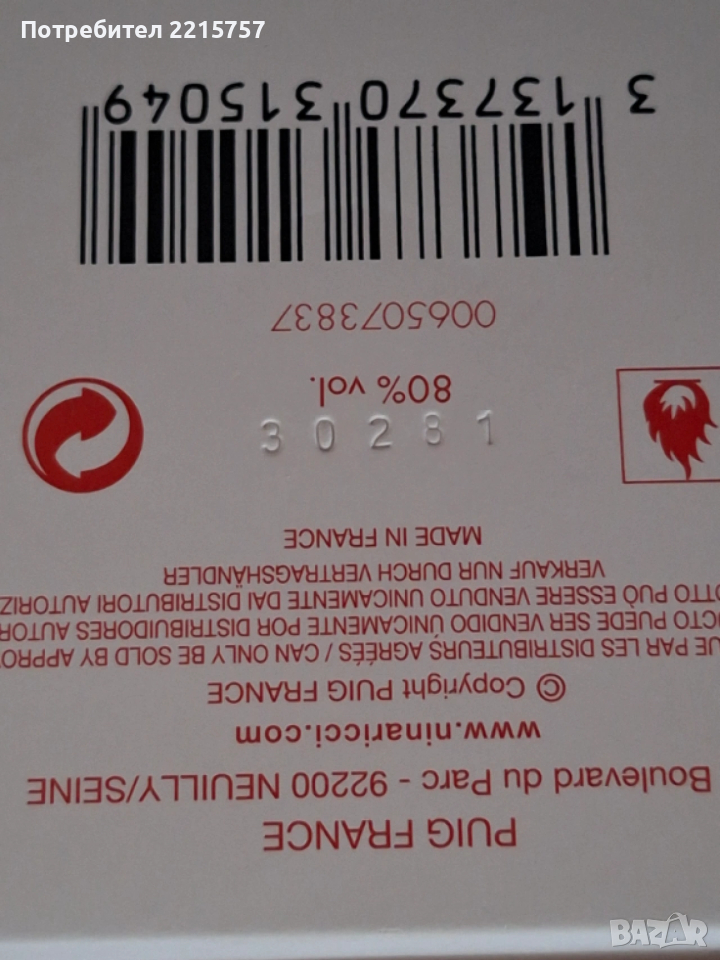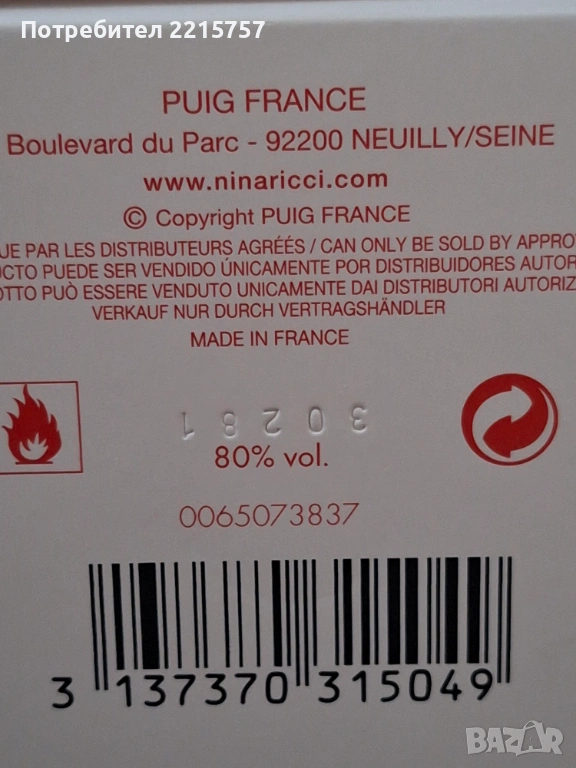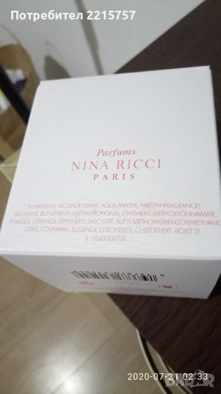 1)Дамски парфюм Nina Ricci L'EAU 30ml. Остатък показан на снимката. Закупен в оторизиран магазин. Има сериен номер. Цена 18€.....................................................................................................................2)Прафюм Guess 75ml. Остатък 55мл.Има сериен номер. Цена 18€.....................................................................................................................3)Парфюм Calvin Klein 30ml. Само пробван. От лична колекция. Има сериен номер. Цена 18€