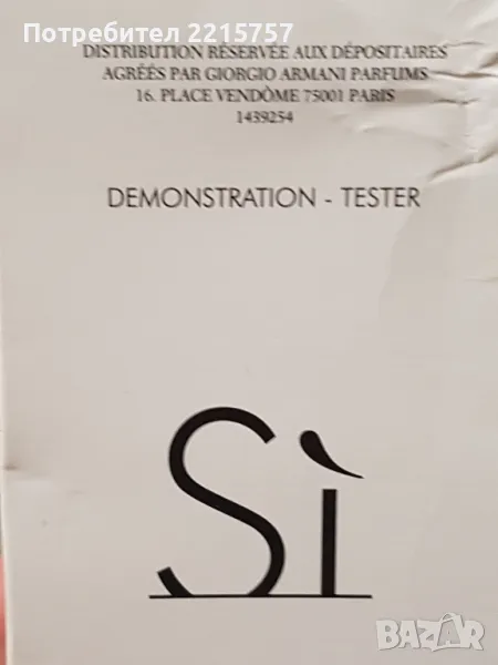 ..1)Дамски тестер "Мюлер" 45мл. Пръскан няколко пъти. Цена 10лв.намалена на 7лв.ПРОДАДЕН..................................................................................................2)Дамски тестер "Трезор" 45мл. Само пробван. Цена 15лв..намален на 7лв................................................................................................................ ..3)Дамски тестер на Армани "Си". Само пробван. 100мл. Цена 45лв.