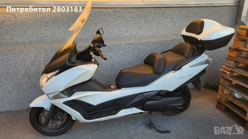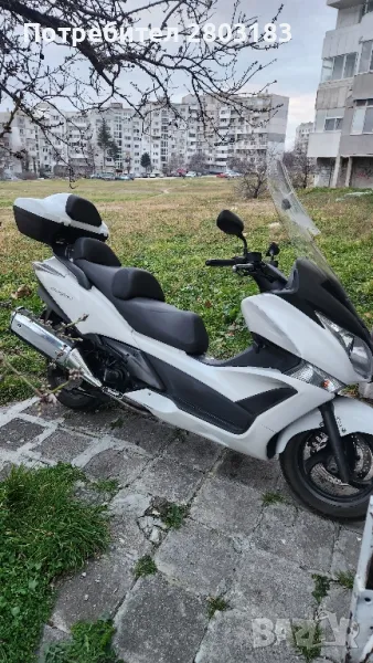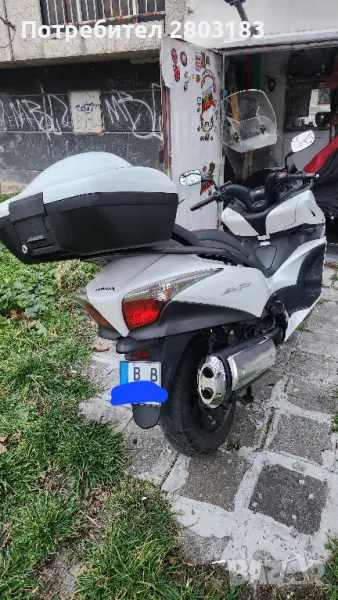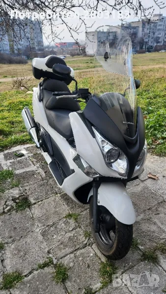 Макси скутер в добро състояние както техническо така и визуално на 29 х.км. кара се всеки ден с редовни документи , като екстри топ каса оригинална за модела и ABS система на спирачките задължително прехвърляне . Екстри: Багажен Куфар, Имобилайзер, Предно стъкло със надстройка ,гардове за ръцете които светят и изпълняват роля и на габарити,Катализатор,ABS Система на контрол на сцеплението, Автоматичен контрол на стабилността, Електрически стартер, Бордкомпютър ,два комплекта ключове за палене и топ касата, за допълнителни въпроси не се притеснявайте да звъннете на посоченият телефон. Възможен коментар на цената на място след оглед.