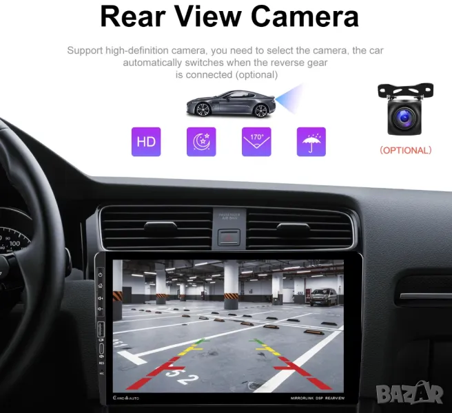 Супер промоционална цена! Директно от вносител. В наличност. Пълен комплект, готов за монтиране. Включена е и качествена водоустойчива камера с висока AHD резолюция и широк ъгъл на видимост. Също така е включен 6-метров кабел към нея в комплекта! По ваше желание може да добавите и втора предна камера.