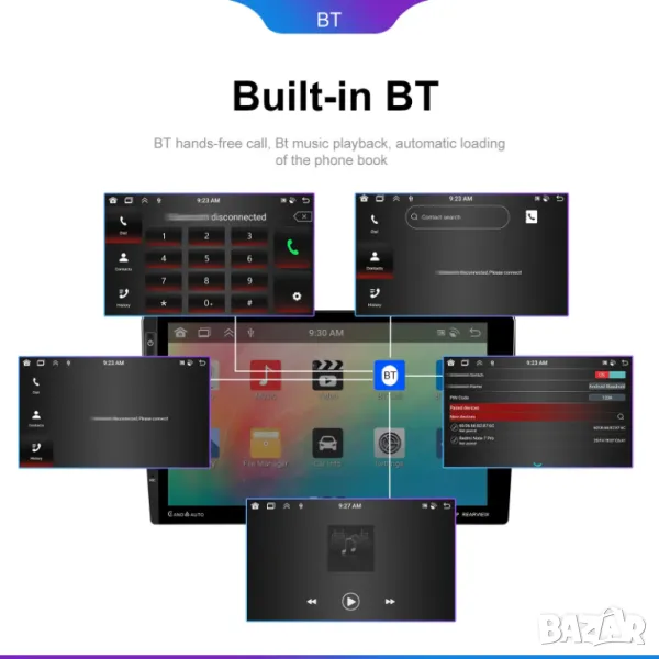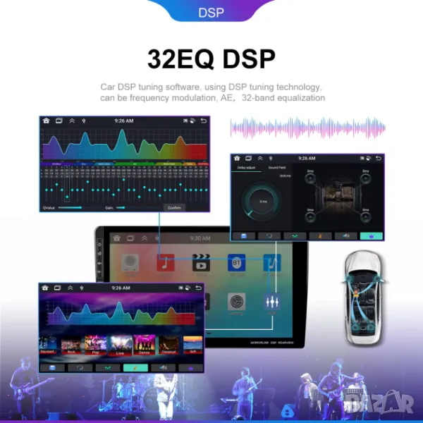 Всички функции и екстри с качествен звук! 9-инчов голям супер екран.