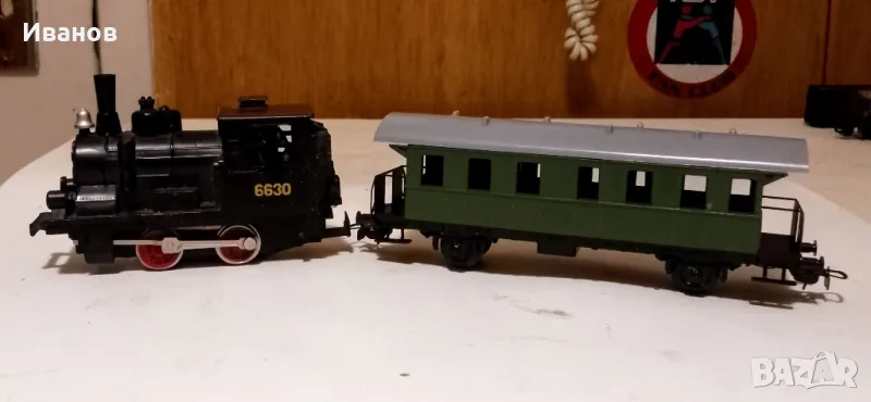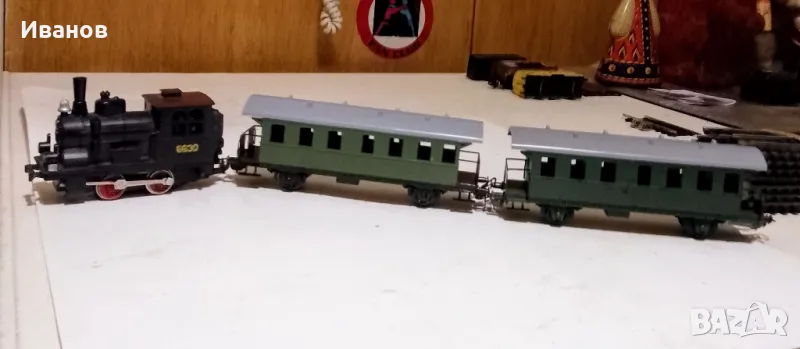 Предлагам комплект влакче НО, локомотив,два вагона и релси.