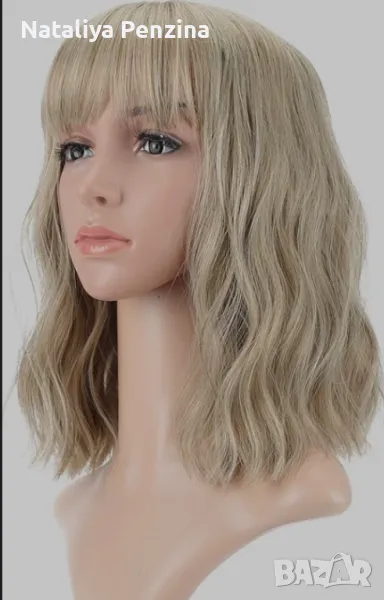 Естествена вълниста руса перука с въздушен бретон → Обява 48870923