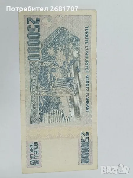 банкнота 250000 турски лири , снимка 1 - Нумизматика и бонистика - 48871626 банкнота 250000 турски лири , снимка 2 - Нумизматика и бонистика - 48871626 1/2