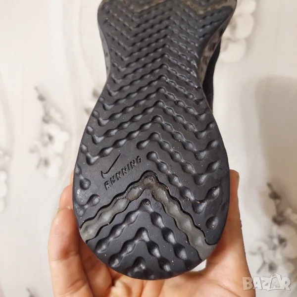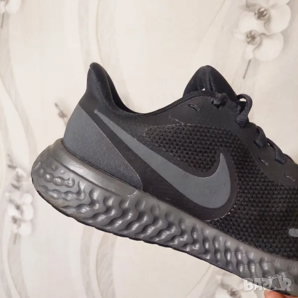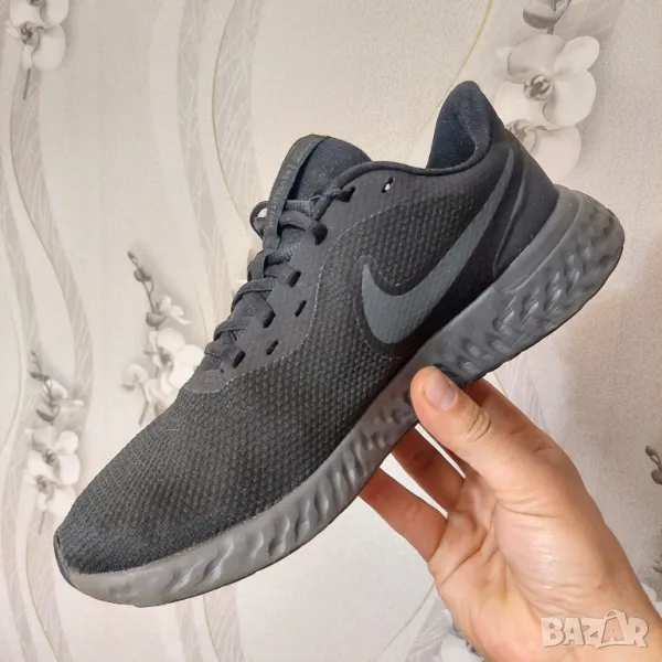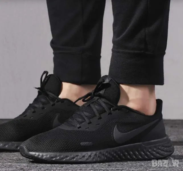 Супер леки и удобни черни мъжки маратонки Nike от серията Revolution, изработени от висококачествени текстилни материали. Материята осигурява отлична вентилация и комфорт на стъпалата. Маратонките се закопчават с връзки, имат лого на марката от външната страна, както и светлоотразителни елементи. Гумената подметка е устойчива на износване и осигурява нужното сцепление и стабилност. Подходящи са както за ежедневно носене, така и за спорт. Много добре се съчетават с дънки или спортно долнище.