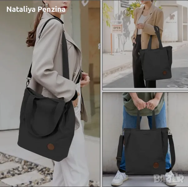 Материал на размера: Тази дамска пазарска чанта е изработена от висококачествен плат, който е супер мек и плътен и се чувства удобно. Платен джоб с цип. Размери: 30 x 12 x 38 cm (Д x Ш x В). Голям капацитет: Тази чанта за жени има четири джоба, включително основно отделение с цип, малко отделение с цип и два малки джоба, които могат да съхраняват чадъри, таблети, карти, мобилни телефони, химикалки или паспорти и т.н. Тя е достатъчно голяма за съхранение на нещата, от които се нуждаете всеки ден. [Няколко метода за носене] Този дамски шопер може да се използва като чанта през рамо, раница през рамо или ръчна раница. Има различни методи за раница, които да отговорят на вашите нужди. Множество сцени: Този голям дамски шопер е лек и издръжлив, с класически дизайн, който е подходящ за много поводи. Можете да използвате дамската чанта като дамска чанта, пазарска чанта, ученическа чанта за работа, училище, пътуване, срещи, ежедневието и др.