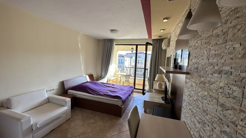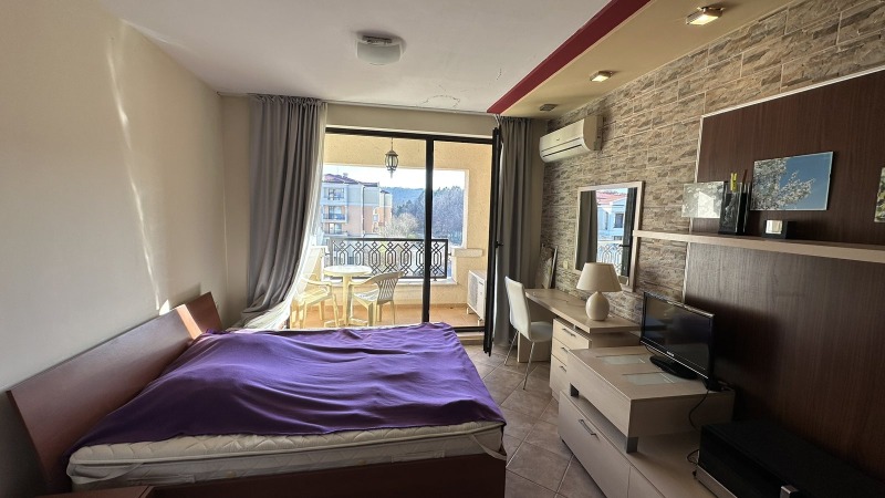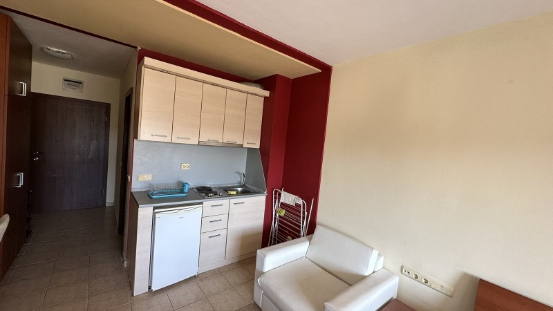 Имотът се състои от еднопространствено решение на кухненски бокс, кът за хранене, спалня и тераса с добри размери и гледка, баня и тоалетна.