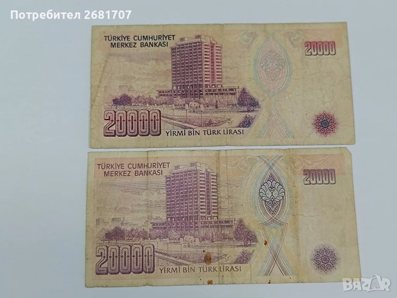 банкноти 20000 турски лири , снимка 1 - Нумизматика и бонистика - 48873511 банкноти 20000 турски лири , снимка 2 - Нумизматика и бонистика - 48873511 1/2