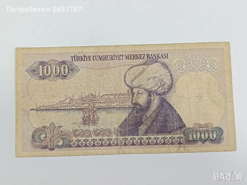 банкнота 1000 турски лири , снимка 1 - Нумизматика и бонистика - 48873566 банкнота 1000 турски лири , снимка 2 - Нумизматика и бонистика - 48873566 1/2